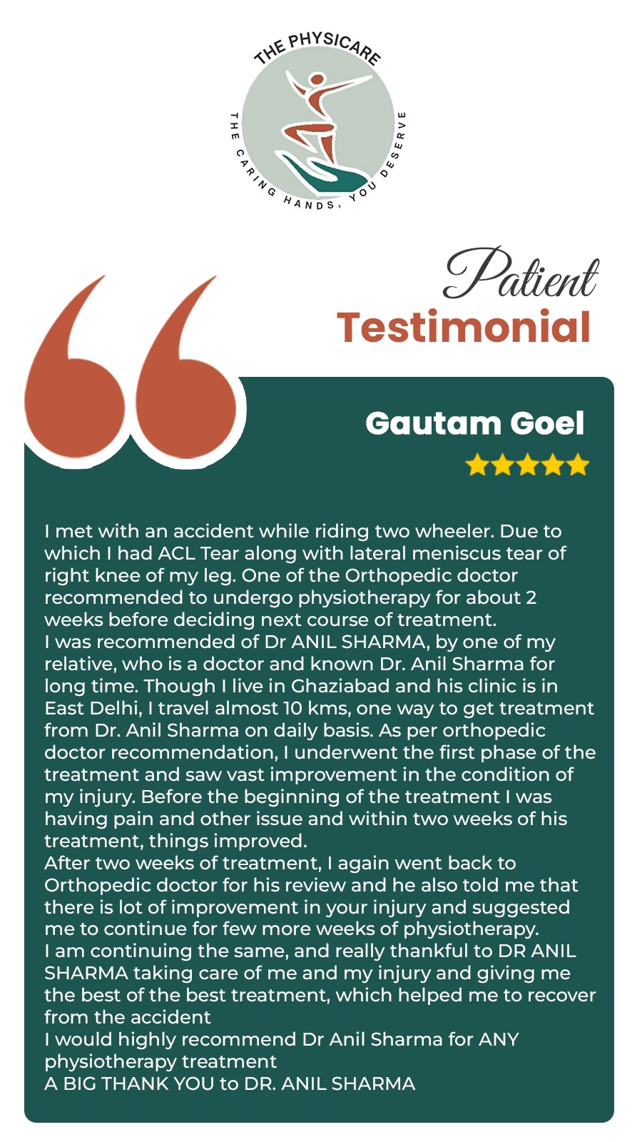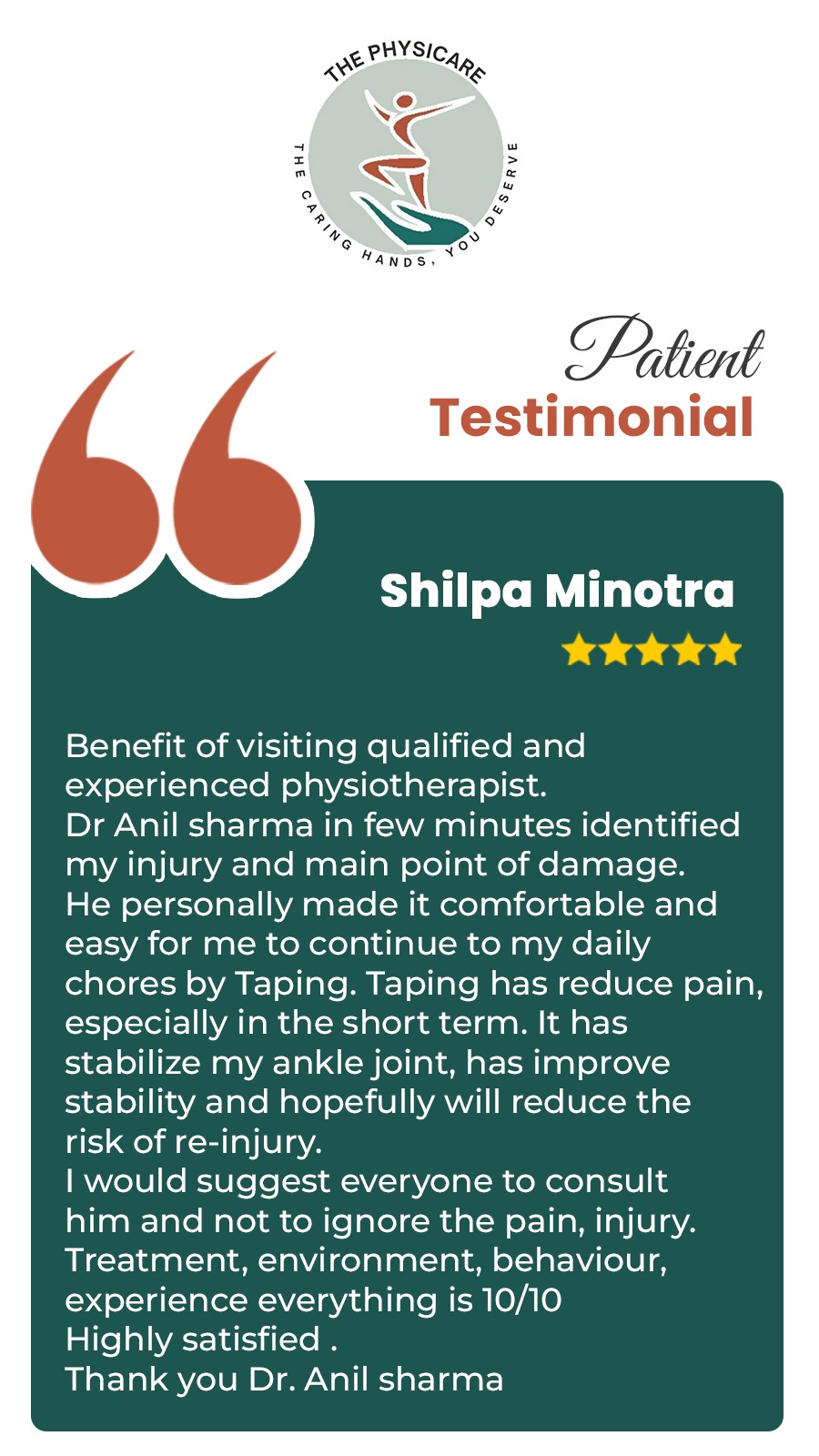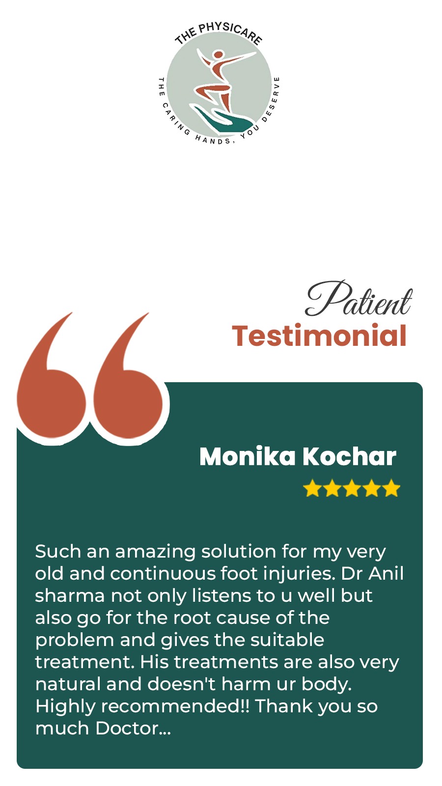 Established in 2001, The Physicare in Delhi is not just a physiotherapy clinic — it is a movement awareness center. Patients are not just treated; they are educated and empowered. The clinic is equipped with modern machines, a personalized evaluation process, and home plan coaching — making it a trusted choice for long-term recovery and preventive care.
